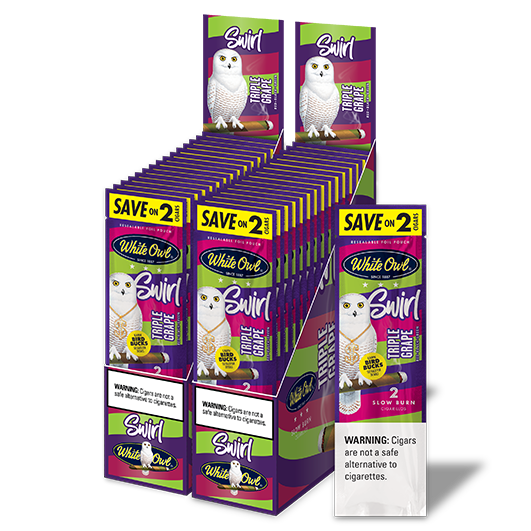Now available every day, White Owl's Swirl Triple Grape combines three different colored wrappers for an explosion of red, black, and green grape flavors.