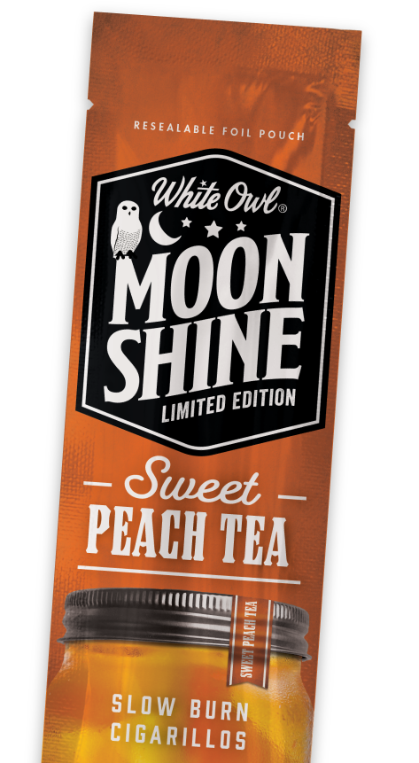 There’s a new moon risin’, courtesy of the latest addition to our growing family of Moonshine flavored slow burn cigarillos. White Owl’s Sweet Peach Tea Moonshine cigar is the peach that packs a punch! So if you’re up for something with a sweet, scrumptious and down-home taste, then you’ll be right at home with White Owl’s Sweet Peach Tea Moonshine cigar, available now for a limited time.